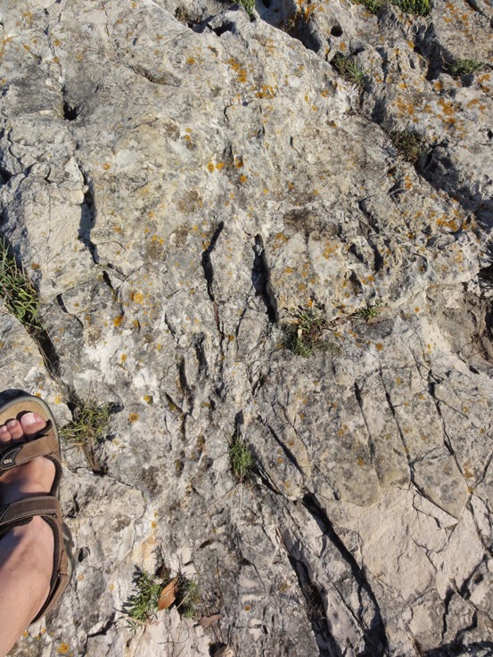 A small crocodilian trackway with some territorial scratch marks (on the right). Late Albian of Pula. Some sauropod, theropod and possibly pterosaur tracks are near by.
